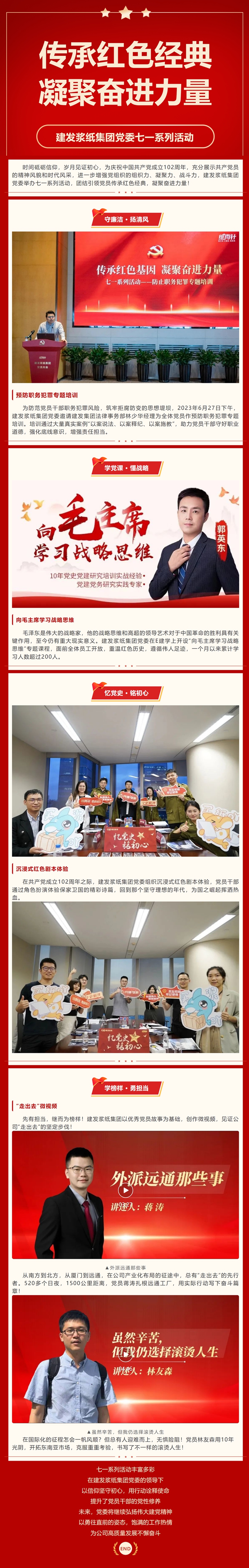 传承红色经典,凝聚奋进力量——建发浆纸集团党委七一系列活动