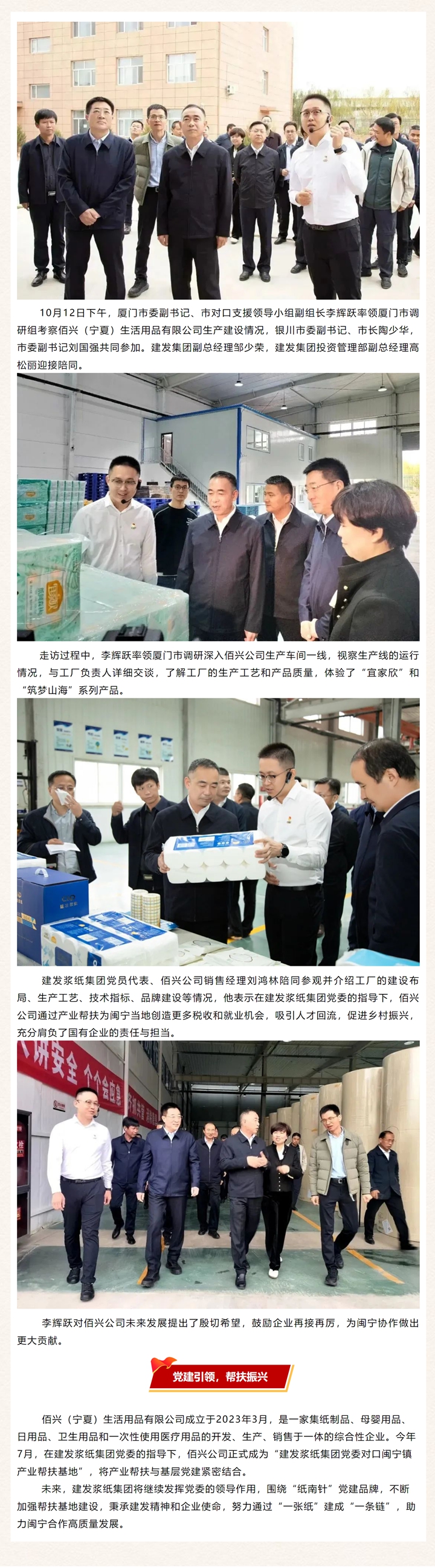 厦门市委副书记李辉跃率团考察宁夏佰兴公司
